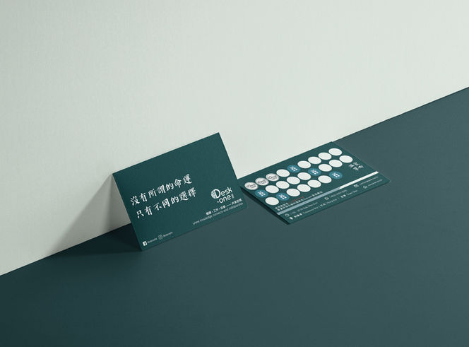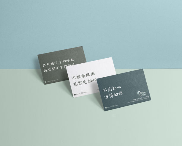 Since the stamp collection program was purposed to encourage repeat visit to Desk-one where is a collaborative work and study space, my design is to motivate audience to study hard to best match with the business nature of Desk-one. Hence, I sourced and placed some knowledgeable and inspirational quotes on front page of the cards. 3 versions of card with different quotes and colours were designed for professional exam takers (blue), students (white) and freelancers (brown) respectively, to fit with their different work or study path.