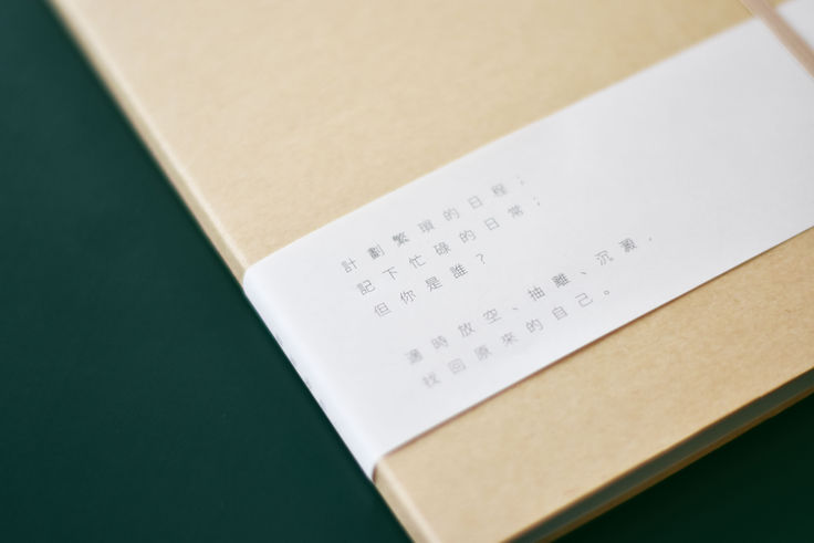 This notebook idea is about seeking the original self. Short lines of words are stated to ask users to take a break sometimes during a busy work period, since it is easy to get lost and forget the reason of working on something